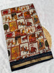 Ajrakh With Kalamkari Design Hand Block Print Maslin Soft Silk Saree M1