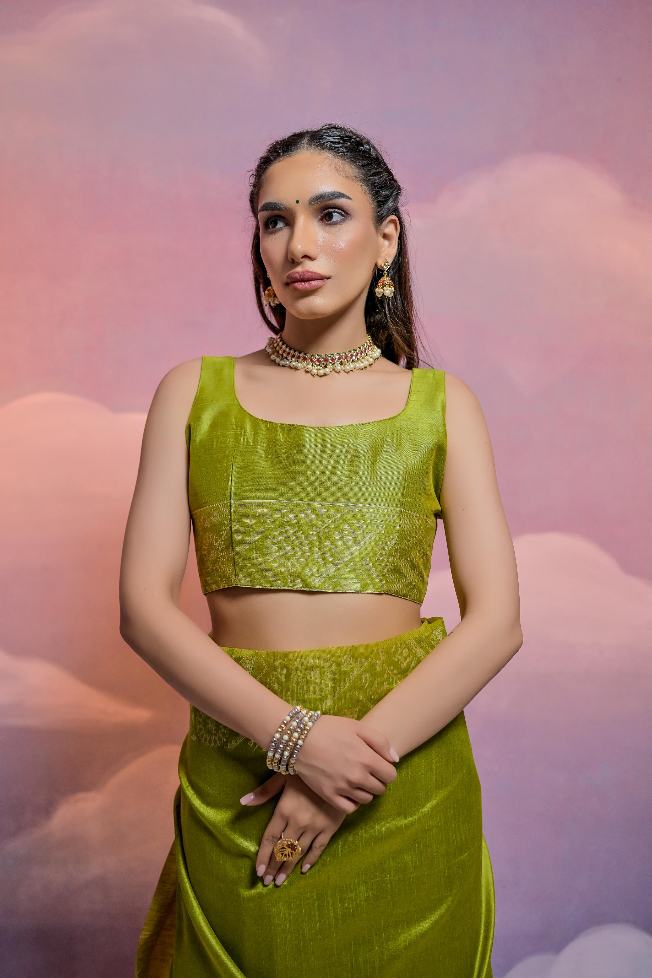 Immerse yourself in the opulence of the Woven Raw Silk Saree, a true epitome of luxury and sophistication. The raw silk's natural texture adds a unique depth and dimension to the fabric, enhancing its overall elegance.The saree's subtle luster and exquisite texture make it a statement piece, ensuring you captivate every eye with your impeccable style.
